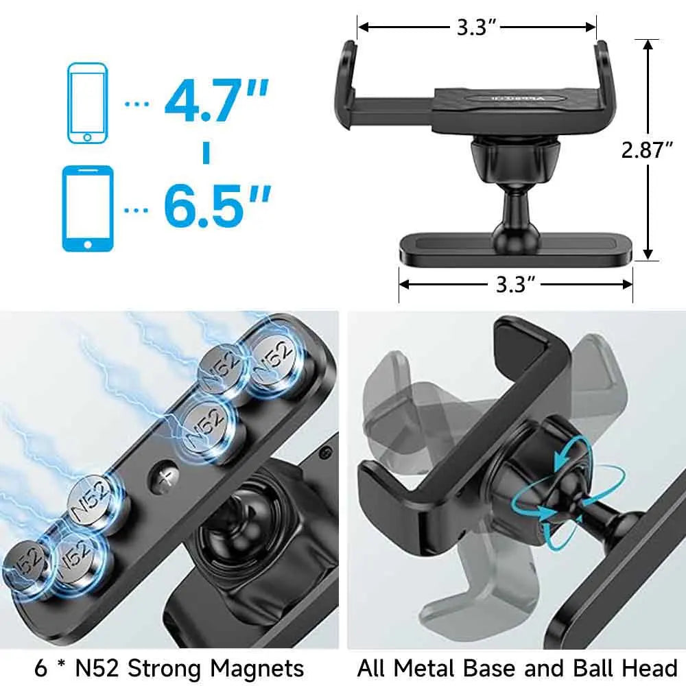 Universal Magnetic Phone Holder: Powerful Magnetic Base, Built-in 6*N52 industrial magnets, this magnetic phone holder can hold your device strongly to the metal gym buddy, Compatible with all 4.7-6.5" smartphones.